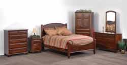 ![]() Amish crafed Sleigh Bed in solid Cherry hardwood and raised panel headboard and footboard. |