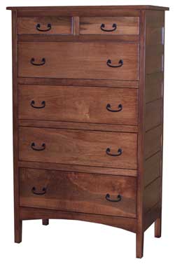![]() Amish crafted Vandalia Bedroom Chest with 5 full extension flush mount drawers handcrafted out of solid brown maple. |