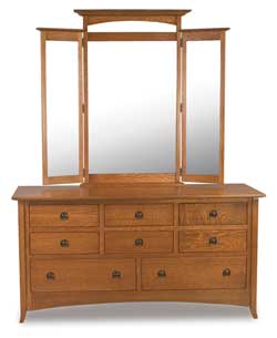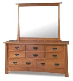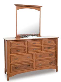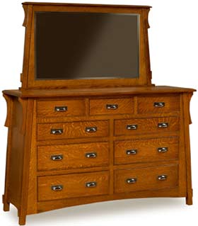 ![]() Shaker Hill Mission 10 drawer dresser and mirror. Solid Quarter Sawn White Oak construction featuring full extension self closing drawer glides. Have this dresser Amish custom made in your choice of widths and heights. |