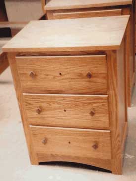 ![]() Three Drawer Remington Nightstand Shown in solid Oak |