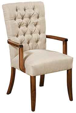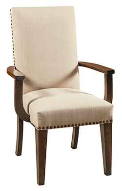 ![]() Amish Made Alana Formal Arm Dining Chair handcrafted out of solid Brown Maple with Asbury stain and Linen color fabric chair seat and back. |
