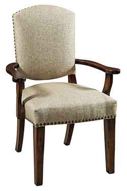 ![]() The Amish made Trenton formal dining room arm chair features solid wood craftsmanship with premium fabric or leather seat and back. |