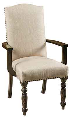 ![]() Our Amish Riverside Arm Dining Chair features clean lines with a soft arched top which pair beautifully with any contemporary or shaker mission formal dining room set. Shown cerafted in brown maple with an Asbury stain and Shelf fabric seat and back. |