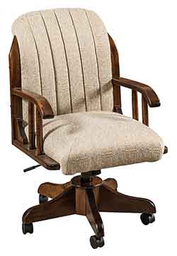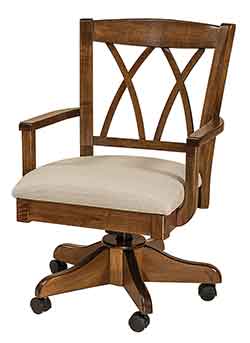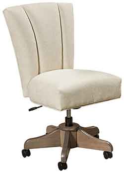 ![]() Amish custom crafted Alexis Desk Chair with our popular Kevco Castered Desk Base. Shown crafted out of solid Brown Maple Hardwood with a nutmeg stain and Linen Fabric. |
