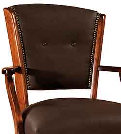 ![]() Detail shot of the Amish berkshire Executive Desk Chair back showcasing the premium leather quality and the Nail head detail. |