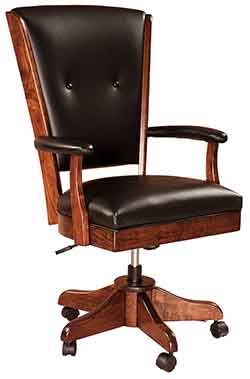 In this day and age more and more people are working out of there house and generally spending more time at their desk. Give your home office a touch of style and a lot of comfort with one of our Amish crafted office desk chairs. We offer a large assortment of Amish made desk chair styles and castered desk chair bases to compliment any office decor. A lot of our other dining room and kitchen chair styles can also be placed on castered desk chair bases. If you see a Amish dining chair style you prefer more, please contact us and we will check to see if it can be converted into a office desk chair.