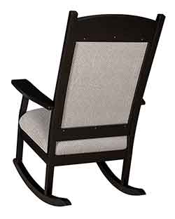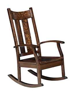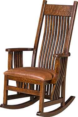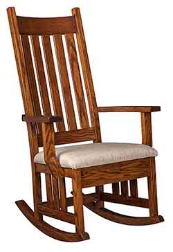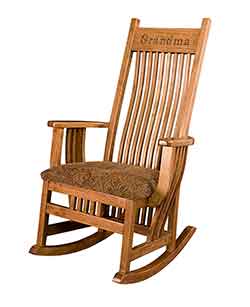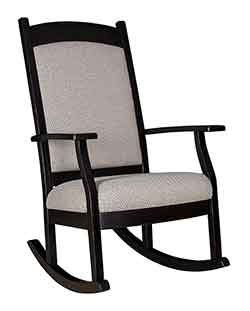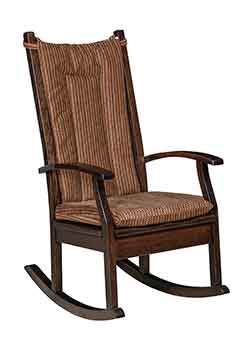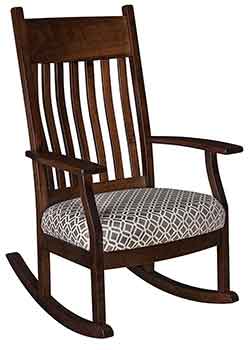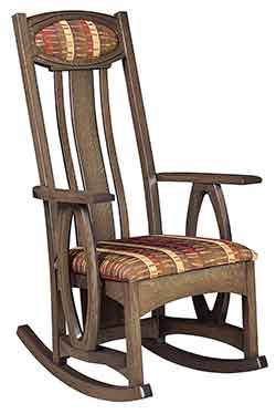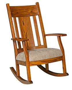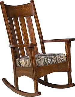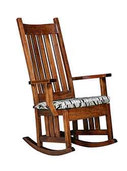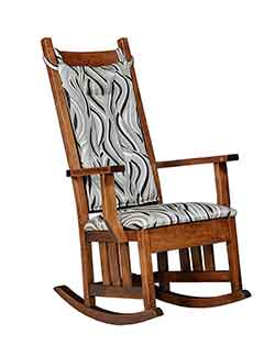 Also our Amish craftsmen can create most pieces in your choice of wood. If you are looking for a certain type of wood, whether it be oak, cherry, hickory, maple, quartersawn white oak, or one of our many rustic hardwoods., then give us a call and we would be more than happy to let you know if it is available in that hardwood. Almost all of our rockers can also be crafted with solid wood seats or with a upholstered seat. Choose from one of our hundreds of premium fabrics or leather colors.