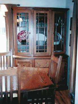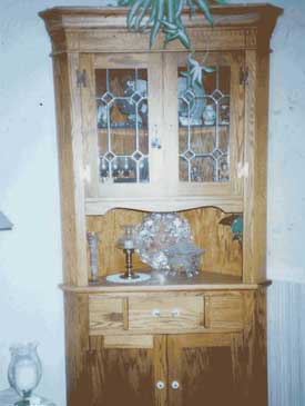 ![]() Natural Oak Leaded Glass Corner Hutch and Scalloped Edge |