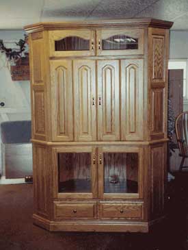 ![]() Oak Corner Entertainment Center with Display Case on Top and Bottom |