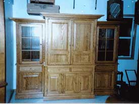 If you can describe it to us, we can design and create it. Entertainment centers come in all woods, such as oak, hickory, maple, cherry, walnut, and quarter sawn. There is also a style to fit every room such as Mission, Shaker, Country, Southern, Standard, Craftsman, and any other setting. As with all of our cabinet pieces are entertainment centers have drawers that are dovetailed on all four corners and can be made with your choice of slides.