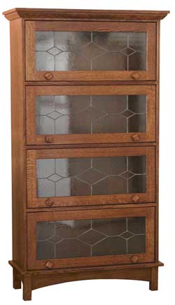 ![]() Angled View of Our Maple Sliding Glass Bookcase with Etched Doors |