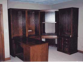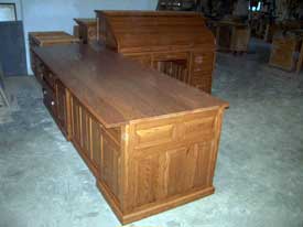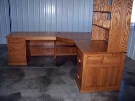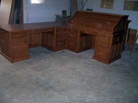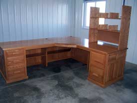 All of our desks are custom made out of solid woods such as oak, cherry, hickory, maple, quarter sawn, or walnut. We will have you desk crafted from your dimensions and in a style that works perfectly in your office. We have custom created desks in Mission, Shaker, Country, Shaker, Queen Anne, and many many more.