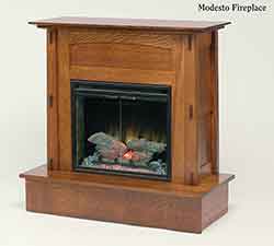 ![]() The Modesto fireplace is show crafted out of solid quarter sawn white oak and stained in a Washington Cherry finish. |