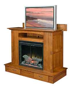 ![]() The Wood Loft Amish Custom Furniture can also custom craft a Amish fireplace that features a lift to raise your television into view when in use and drop it down when it is not in use. |