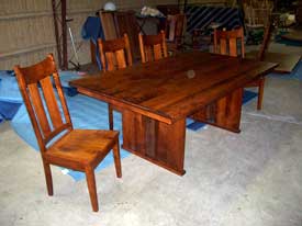 ![]() Amish made Spiral Leg Trestle Dining Room Table |